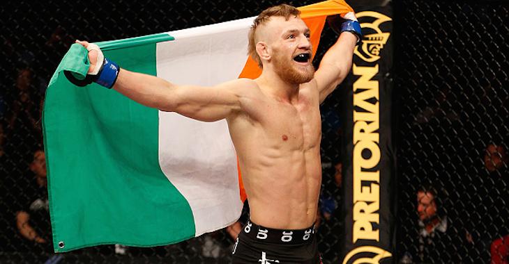 UFC featherweight champion Conor McGregor proudly carries the Irish flag with him at weigh-ins, and when he walks to the Octagon on fight night. McGregor is credited with starting the UFC’s ‘Irish Invasion’ along with his SBG Ireland teammates.