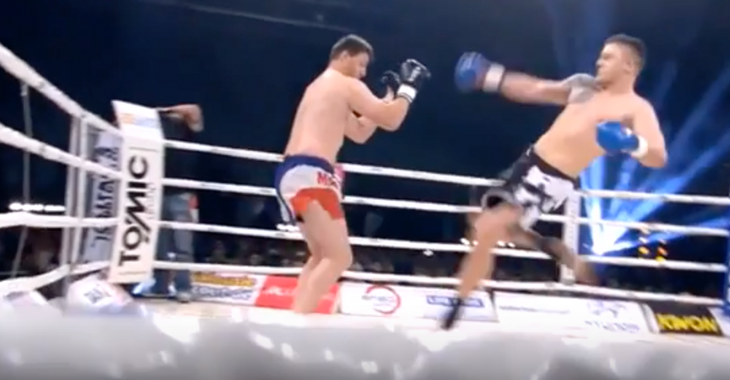 Check out this crazy knockout from Michael Smolik with a kick to the body of his opponent!