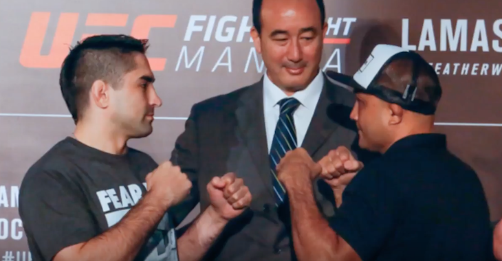 With nearly a month to go until ‘UFC Fight Night: Manila’, where #4 ranked featherweight Ricardo Lamas, and UFC Hall of Famer BJ Penn will have their highly anticipated featherweight showdown, the pair had their first staredown for the fight.