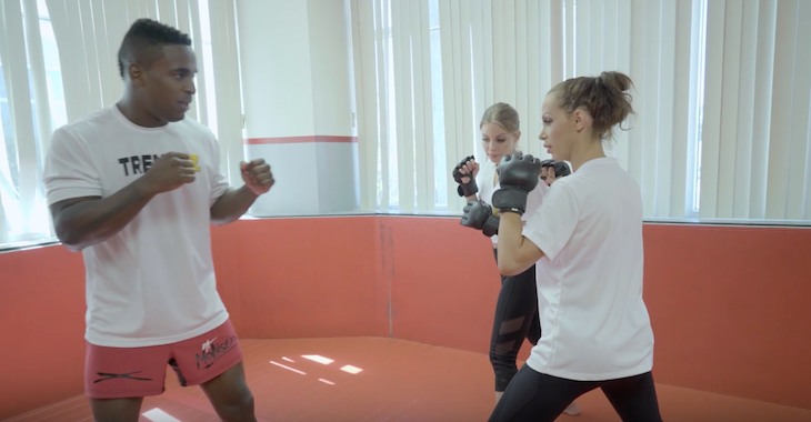Larkin starts off by teaching the women striking basics, such as how to throw a jab, and a cross, before then teaching them several techniques to incorporate with the above-mentioned techniques such as teeps and leg kicks.
