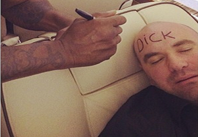 Dana White learned a hard lesson today, don’t fall asleep on a plane while Mike Tyson is around. The boxing legend took a sharpie and had some fun with the sleeping UFC President. Check it out below.