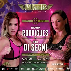 The Rome-native squares off against Portugal-based Venezuelan Elizabeth Rodrigues (4-2 MMA, 1-0 AFL) for the vacant AFL strawweight title in two months, after she failed to get a UFC contract by falling short against Mallory Martin, who happens to be now fighting under the Ultimate Fighting Championship banner.