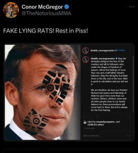 “#Conorwasright #Payyourtaxes #deadrats,” McGregor tweeted in a follow-up.