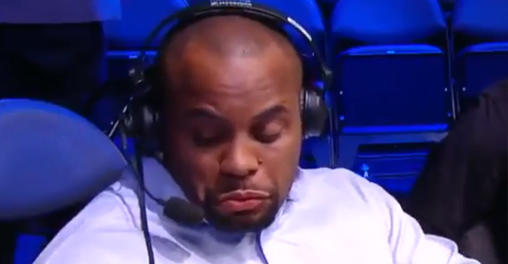 Joe Rogan and Jon Anik seem to carry on, completely unaware that Daniel Cormier is in the midst of an impromptu title defense. No matter what he threw at the cords, they just kept coming back. Luckily, Cormier is a champion and persevered through every round. Eventually, he knocked out the cords by shoulder strike late in the fifth. There you have it, whether it be in the Octagon or in the booth, you better come correct to Daniel Cormier. He embraces the grind. On the other hand, some bluetooth technology might be beneficial for everyone involved.