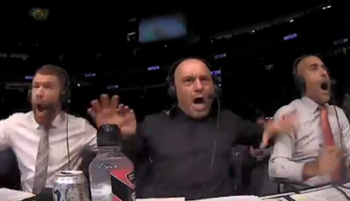 On Thursday, the UFC posted a video of some of the best cage-side reactions from Rogan and his fellow commentators Jon Anik, Daniel Cormier, Dominick Cruz, and Paul Felder.