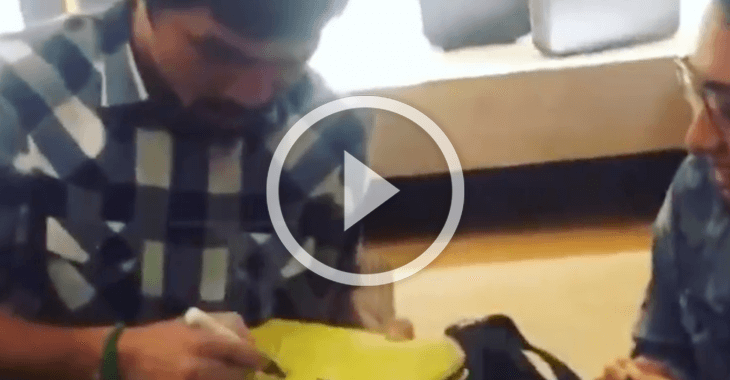 Yup, that’s what one extremely excited fan in Tokyo did when he spotted the boxer walking through the store. Pacquiao obliged and added his signature. The funny thing? There’s a good chance with the addition of the signature the bag is now probably worth less. I guess unless another super Pacquio fan was in search of a signed designer bag.