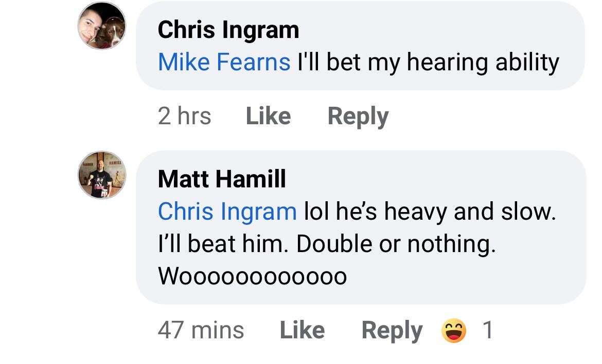 “Lol he’s heavy and slow,” Hamill said. “I’ll beat him. Double or nothing. Wooooooooo.”