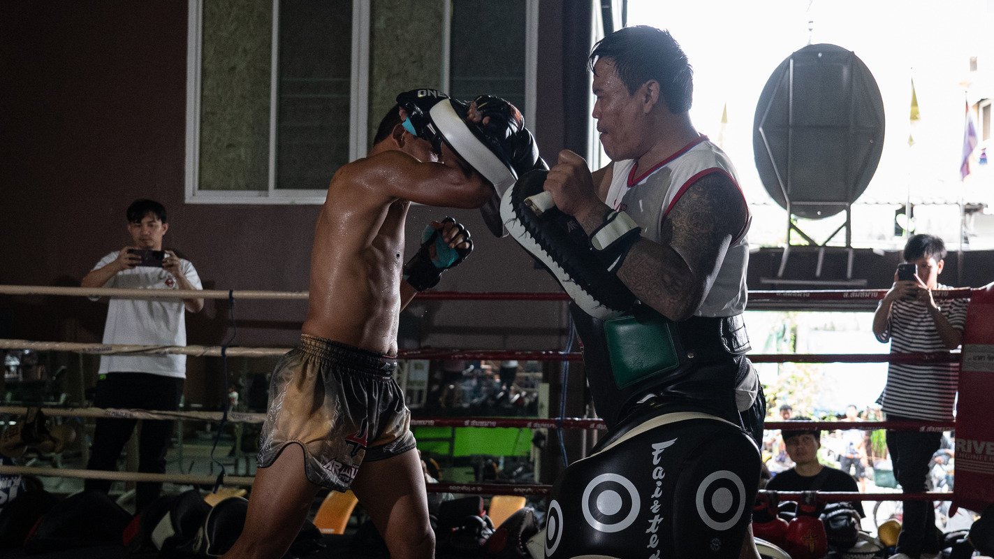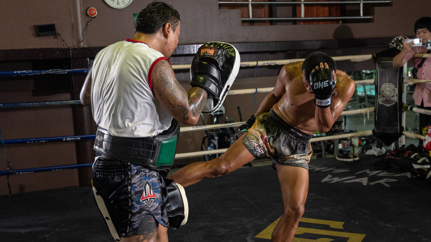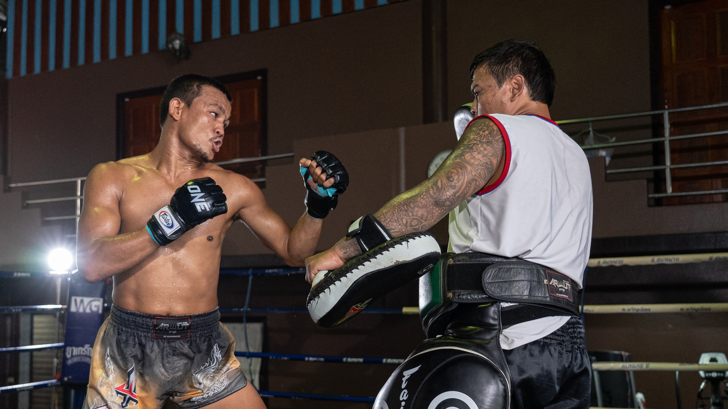 During the intimate workout session, Seksan Or Kwanmuang dazzled in front of the camera. There, he performed several rounds of shadowboxing before transitioning to pad work with his trainer.