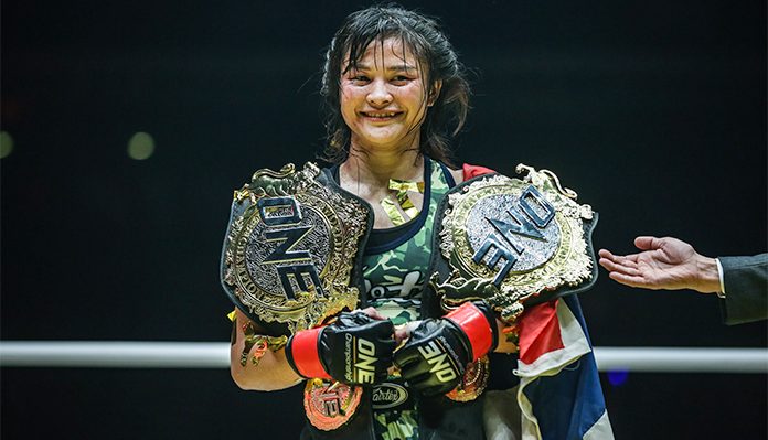 Stamp described herself as a “tiny” child. Growing up in Rayong, Thailand. Her size made her an easy target for her classmates. This pushed the now two-sport champ to find solace in Muay Thai and ultimately paved her way to ONE Championship.