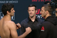 A lightweight bout between Beneil Dariush and Rashid Magomedov took place on tonight’s UFC Fight Night 98 main card in Mexico City. Round one begins and Dariush throws a high kick to start. He comes forward and lands a jab. Beneil misses with a head kick but lands low kick. Beneil presses Magomedov against the cage. He lands a knee inside. Dariush attempts a takedown but gets swept and Magomedov takes his back briefly. A couple of shots landed from Rashid and Beneil breaks free. A low blow connects on Beneil and we have a brief break. Upon the restart Dariush lands a low kick. He throws a jab and follows that up with a kick to the body. A nice superman punch lands for Beneil and then a kick to the body. Magomedov gets a hold of Beneil and presses him up against the cage. Rashid lands a trip takedown and winds up in half guard as round one comes to an end.