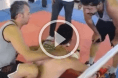 OUCH! Fighter gets knocked out & headgear kicked off by wheel kick