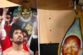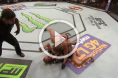 Floyd Mayweather performed his ritual by putting tape over the eyes and mouth of a picture of Pacquiao before he started hitting the speed bag. Pacquiao responded by putting Mayweather’s FACE on his speed bag! Check out the full picture below.