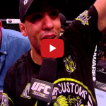 Last night in the main event of UFC Fight Night 57, Frankie Edgar scored a late 5th round submission win over Cub Swanson with just 4 seconds left in the bout. The submission not only earned Edgar ‘Performance of the Night’ honors, but earned him a place in the record books as the latest finish in UFC history. Below is Edgar’s post-fight Octagon speech following the bout.