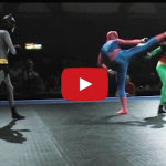 Epic superhero action as the masked menace clashes with the dynamic duo, in a full contact kickboxing bout. Will Spidey’s crisp technique and lightning reflexes triumph over Batman’s power and determination? This happened last year.