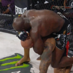 Cheick Kongo picked up his second stoppage in a row tonight against veteran Lavar Johnson. Johnson stated “This can be a short fight if Cheick Kongo cooperates”, and Kongo refused to cooperate. Kongo ducked and dodged all of Johnson’s wild punches until Johnson eventually overthrew to the point where he fell down. Kongo hopped on top of him and that was the beginning of the end.