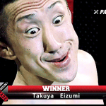 In what is arguably the strangest victory celebration we’ve ever seen, Takuya Eizumi points at a random fan and makes this hilarious face. Check it out: