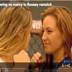 Video: Tate showing no mercy in Rousey rematch Ultimate fighter coach, Miesha Tate, isn’t planning on playing nice in her upcoming fight against champion, Ronda Rousey. “I’m going to break her jaw,” said Tate. “I’m not going to stop punching until something on her face is broken and she wakes up looking at the lights.