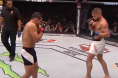 A 140-pound catchweight bout between former bantamweight champion Renan Barao and Aljamain Sterling took place during tonight’s UFC 214 prelims from Anaheim, California. Round one begins and Barao opens up with a body kick. Sterling responds with one of his own. Barao leaps in with a left hand and then a leg kick. Sterling presses forward and just misses getting caught with a spinning head kick from Renabn. Barao with a leg kick. Sterling returns fires with one to the body. Barao trips Sterling and winds up on top. Sterling immediately rolls for a leg lock. He sinks it in but Barao catches him with a good shot. Another good punch from Barao and he takes top position. The Brazilian quickly passes to half guard but Aljamain scrambles back to full guard. Barao with a left hand. He moves to half guard and lands an elbow. Renan with a some knees to the body. Sterling scrambes back with full guard. He attempts a sweep but Barao says no. Sterling looks to lock up a triangle but Barao postures up and rains down left. The horn sounds to end round one.