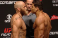 A key flyweight tilt between Ray Borg and Jussier Formiga took place during tonight’s UFC Fight Night 106 card in Brazil. Round one begins and Borg starts out quickly with a combination. That fighters clinch up and both men exchange good knees inside before eventually breaking. Formiga with a hard leg kick. Borg presses forward and lands a left jab. Formiga retreats and then throws a low kick that connects with Borg’s groin. The referee steps in to let Ray recover. He does and we restart. Borg charges forward but misses with a left hand. The fighters clinch and Ray lands a good knee inside. Formiga presses him up against the cage. The fighters exchange knees. They break and Borg is able to connect with a hard uppercut. Formiga circles and Borg presses forward. Jussier connects with a beautiful counter right. Both men lands right hands now. Formiga with a nice combination to close out round one.