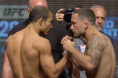A key bantamweight bout between former title holder T.J. Dillashaw (13-3 MMA) and Raphael Assuncao (23-5 MMA) took place on tonight’s UFC 200 preliminary card in Las Vegas. Round one begins and Assuncao takes the center of the octagon. TJ lands a good leg kick. Dillashaw is utilizing a lot of movement early. Raphael misses with a a wild right. TJ with a leg kick. Assuncao returns fire with one of his own. Nice right lands for TJ. The fighters exchange leg kicks. Nice spinning back kick from Assuncao. He follows up with a leg kick. TJ lands a double jab. Raphael catches a kick and lands a knee. Solid leg kick lands for Dillashaw. Assuncao presses forward with punches and attempts a takedown. It is not there. Nice leg kick and then a body kick from Assuncao. TJ shoots in for a takedown but it is not there. Excellent right hand from TJ. He presses forward but eats a punch from Assuncao. Round one comes to an end.