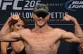 A lightweight scrap between Josh Emmett and Scott Holtzman took place during tonight’s UFC on FOX 22 prelims on FS1. Round one begins and Emmett throws a head kick that is blocked. Holtzman replies with a right and then a left hand. Josh with a kick to the body. Scott counters with a right but Emmett shoots in for a takedown. Scott is able to stuff the attempt but is pressed up against the cage by Josh. Holtzman breaks free and lands a right. He follows that up with a low kick that apparently connected with the groin of Emmett. The referee steps in a to stop the action momentarily. After a short break we continue. Immediately upon restart Emmett lands an eye poke. We break again and then restart. Josh unloads a right hand and then shoots in for a takedown. He gets it but Scott pops right back up. Holtzman charges forward with a combination. Emmett shoots in for a takedown. Scotty stuffs the attempt and begins working some knees from the clinch. The fighters battle against the cage. Emmett presses Holtzman up against the fence. He picks Scott up and slams him to the canvas. Scott is able to quickly get back to his feet however and unleashes a hard combination. The fighters clinch and Scott lands a trip takedown. He begins working some short shots from the full guard position. A nice right hand finds a home for Scott. He begins working some good lefts from the top. Emmett scrambles and gets back up to his feet. Scott still has him pressed against the cage and lands some good knees. Emmett breaks free and circles out. Round one comes to an end.