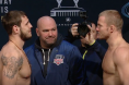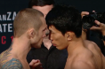 A featherweight tilt between Cub Swanson and Dooho Choi took place on tonight’s UFC 206 main card in Toronto, Ontario, Canada. Round one begins and Choi presses forward and lands a right. The fighters clinch and Choi lands a pair of knees inside. He grabs a hold of the neck of Swanson and lands two nice knees to Cub’s head. Swanson breaks and throws a kick. He lands a low kick. Choi chases after him and misses with a high kick. Cub responds with a right hand. Choi is pawing with a left jab. Cub cracks him with a counter left. Choi eats it. Swanson charges forward with a combination and then lands a low kick. He cracks Choi with an overhand right. Dooho moves forward and lands an uppercut. He grabs Cub and utilizes the clinch. Swanson with a good knee inside. Choi presses him against the cage and looks to score a trip. It does not work and Swanson switches the position and begins working some knees. They break and Swanson lands a right and then a leg kick. One minute remains. Swanson lands a hard leg kick. He follows that up with a right hand. Choi presses forward and lands a left jab. He is having trouble gauging Swanson here. Round one comes to an end.