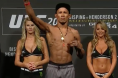 A key bantamweight bout between John Lineker and John Dodson served as the main event of UFC Fight Night 96 tonight in Portland, Oregon. Round one begins and Lineker takes the center of the octagon and lands a leg kick. Dodson fires back with one of his own. Another big leg kick scores for Lineker. Dodson circles and lands a hard outside leg kick. Lineker misses with a front kick. John Lineker throws a jab to the body and Dodson fires back with a kick to the body. The men trade strikes. Lineker is walking forward here. Dodson lands a high kick but Lineker eats it. A big left hook scores for Lineker. 30 seconds remain. Dodson scores a trip but Lineker pops right back up. A nice front kick lands for Dodson. Lineker leaps in with a flying knee and then a short hook to close out round one.