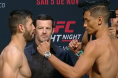 A lightweight bout between Leonardo Santos (16-4-1 MMA) and Adriano Martins (28-8 MMA) kicked off tonight’s UFC 204 pay-per-view event in Manchester, England. Round one begins and Santos lands a kick to the body to start. He follows that up with a front kick which is blocked. Martins circles and lands a low kick. Santos presses forward but misses with an attempt body kick. The fighters trade low kicks. Santos throws a high kick that is blocked. The fighters trade jabs. Martins is applying pressure now. Santos paws with a jab. Martins leaps forward with a left hook that misses. The fighters again trade low kicks. Another leg kick exchange. Martins catches a Santos low kick but cannot score with an attempted trip. Martins throws a big uppercut that partially connects. Santos fires back with a hard body kick. Round one comes to an end.