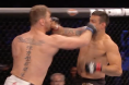 Round one begins and Font opens up with a front kick to the body of Lineker. Rob with a high kick that misses. Good counter right to the body by John. Lineker lands a solid leg kick. Good jabs from Font. He lands an uppercut. Lineker is having trouble closing the distance. He charges forward with punches but nothing lands. Font with a jab but Lineker is able to counter with a left hand. Good leg kick scores for Font. Good combination from John. He goes to the body of Font. Rob retreats and pumps his jab. Lineker is stalking him. He charges forward. Lineker with a leg kick that drops Font. Rob pops right back to his feet and lands a jab. Lineker comes forward and lands some big shots to the body and head of Font. Lineker shoots in and lands a takedown. He’s working from half guard and landing some nice shots. Font fights his way back to his feet. Lineker charges forward and lands some big shots to the body. Round one comes to an end.