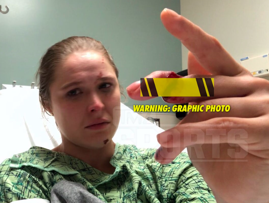 Rousey, according to the report, injured two fingers in the incident, her middle and ring fingers with the former getting the worst of it. Rousey broke and nearly severed the tendon in her middle finger, as can be seen in the photos below, courtesy of TMZ.