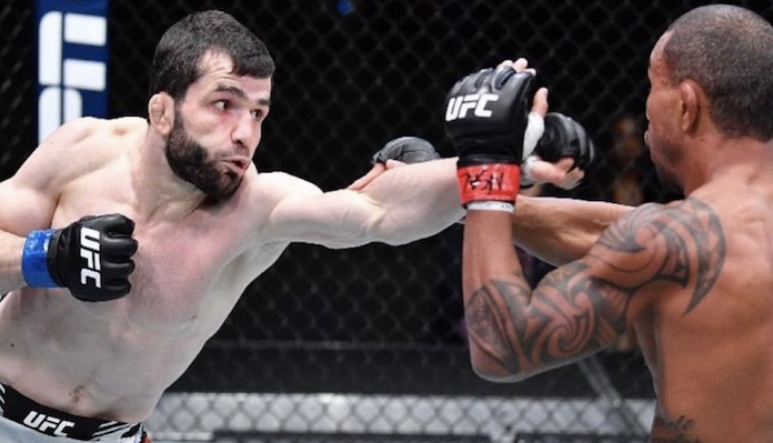 Valiev won a majority decision over Barcelos in a wild, back-and-forth fight that saw the Russian and the Brazilain take home “Fight of the Night” for their all-out war. Valiev took the first round with more volume on the feet, but Barcelos dropped him twice in the second round and appeared to be on his way to knocking Valiev out, though he somehow made it to the end of the round. At that point, Barcelos had expended most of the gas in his tank, and Valiev was able to outstrike Barcelos in the third round to win a majority decision.