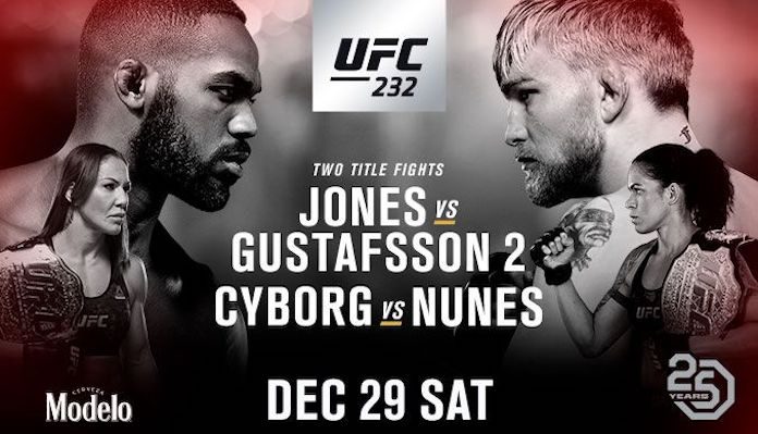 UFC 232 is topped by a light heavyweight title rematch between former champion Jon Jones, and the toughest opponent of his career thus far, Sweden’s Alexander Gustafsson. The pair collide with the light heavyweight title, recently vacated by Daniel Cormier, on the line.