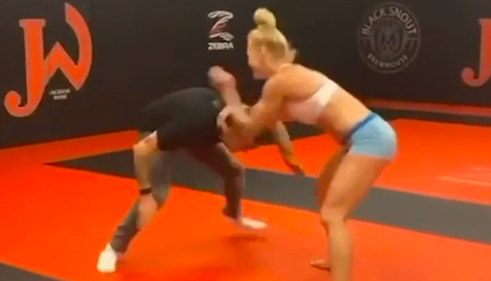 Steve-O also got the opportunity to grapple with Holly Holm. However, his grappling attempts didn’t fare much better as “The Preacher’s daughter” worked her magic and took down the Jackass veteran. Watch the entertaining clip below.