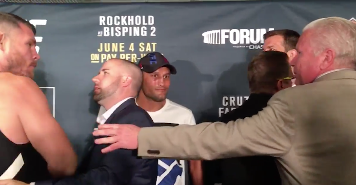 VIDEO | Michael Bisping and Luke Rockhold forced to be separated backstage