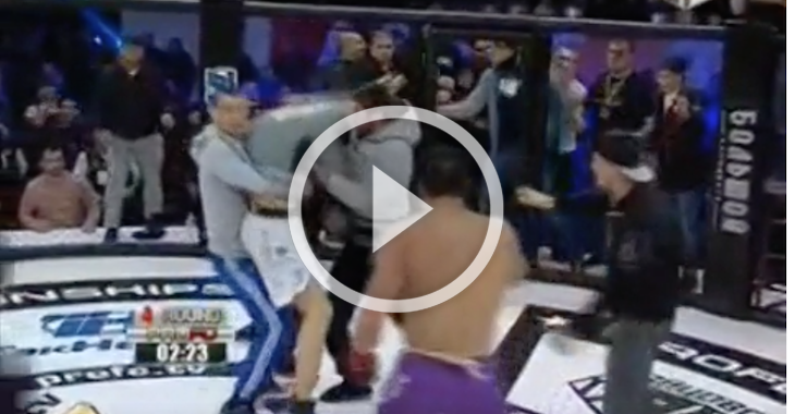 Home » MMA News » Videos » REPLAY! Cornermen Brawl Inside Cage