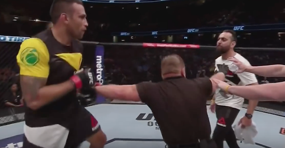 Following the fight however, Werdum was involved in a brief scuffle with Browne’s head coach, Edmond Tarverdyan inside the Octagon. Footage of the incident shows Tarverdyan saying something to Werdum, which prompted ‘Vai Calvao’ to front kick the Glendale Fight Club coach in the stomach. Before Tarverdyan was able to attempt an attack of his own, the referee stepped in and separated the men before the situation escalated even more than it already had.