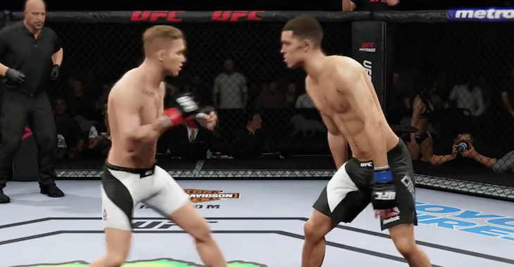 While Diaz will surely never have the opportunity to settle his beef with Bieber inside the Octagon, an EA Sports UFC 2 video of the two fighting has surfaced, and it’s hilarious.