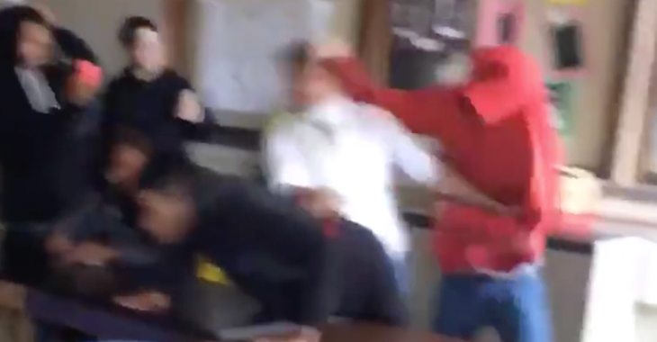 VIDEO | NSFW – Student regulates when teacher is punched in the middle of school fight