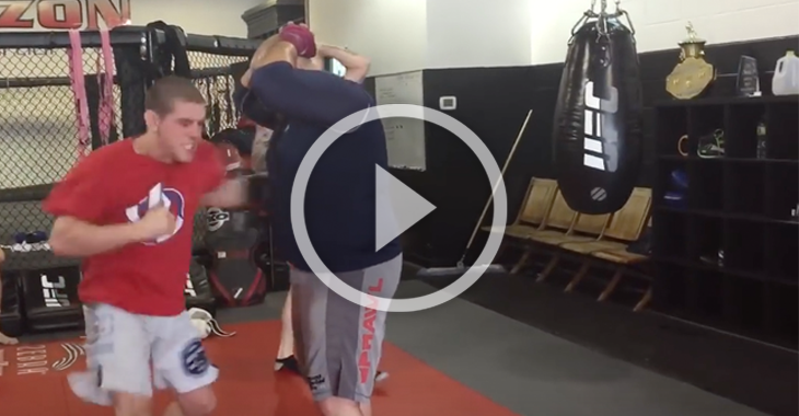Check out UFC veteran Joe Lauzon in his attempt to fold one of his training buddies hitting him with strictly body shots.