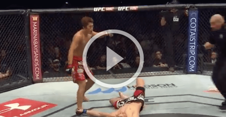 UFC president Dana White shares some pretty great stuff in his clip of the day posts. Wednesday’s featured one of the nastiest spinning elbow KO’s you’ll ever see. In fact it might be up there with THE best. It happened during Kim vs Hathaway on March 1, 2014 at the Venetian in Macao, China. Kim landed a nasty spinning elbow that put Hathaway down for the count. Just listen to the sound it makes!