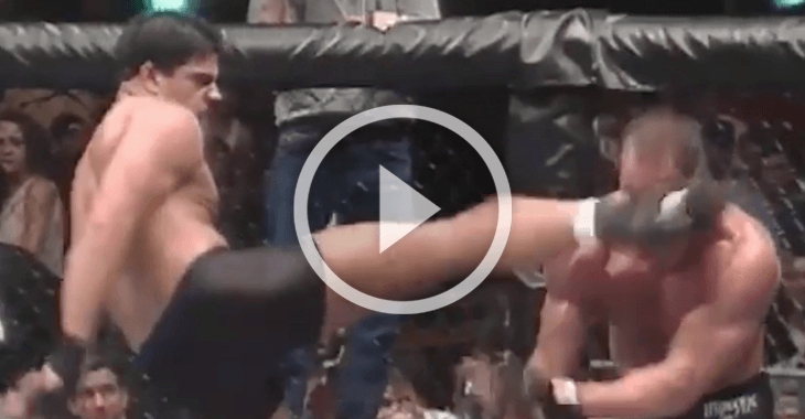 As if head kick KO’s weren’t brutal enough, check out UFC President Dana White’s ‘Clip of the Day’ from the UFC’s dark ages where Pete Williams knocks out Mark Coleman via head kick KO…while wearing shoes!