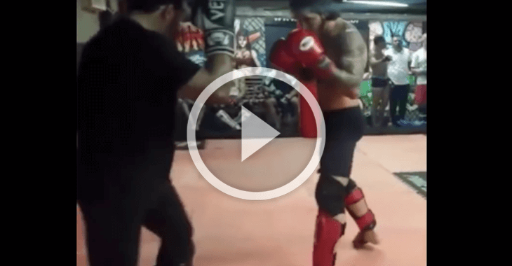 Erick Silva lands brutal back kick to body in sparring, drops partner