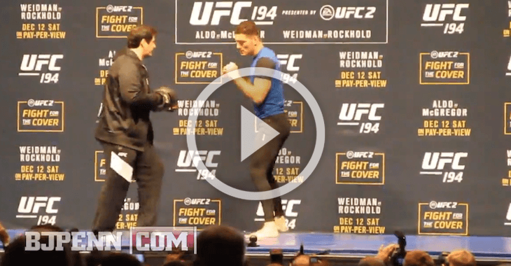 Yesterday at the UFC 194 open workouts BJPENN.com’s own LayzieTheSavage captured footage of UFC middleweight champion Chris Weidman showing off some moves for fans and media members.