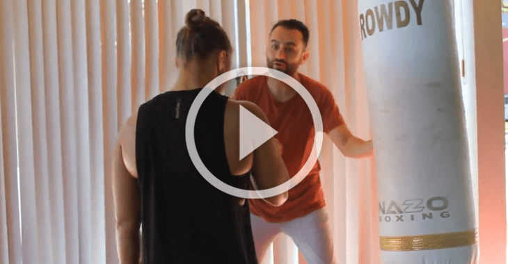 In this exclusive video from LayzieTheSavage we see UFC women’s bantamweight champion Ronda Rousey blasting the heavy-bag with instruction from head coach Edmond Tarverdyan.