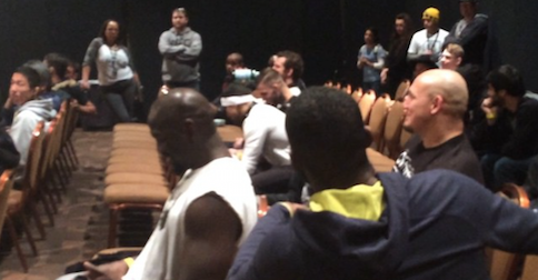 These guys won't stop!!! This just happened in the fighter meeting and this NEVER happens. #UFC182… http://t.co/zqllAmunZO