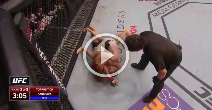 McDonald’s two losses in the last five years came by former champ Renan Barao and former WEC champ Urijah Faber. With the Kanehara on full mount with both hooks in, it only seemed like moments that Mayday would tap. Instead this happened.