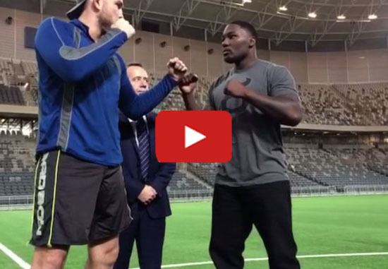 Yesterday in Sweden, Anthony “Rumble” Johnson and Alexander Gustafsson mean mugged for the first time.