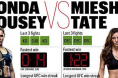 Ronda Rousey vs. Miesha Tate Side by Side Stats Comparison