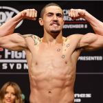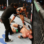 Al Iaquinta (10-3-1 MMA, 5-2 UFC) defeated Ross Pearson (16-8 MMA, 8-5 UFC) via TKO in the second round of tonight’s UFC Fight Night 55 co-main event bout in Sydney, Australia. Al Iaquinta utilized some good head movement and fancy footwork early to begin outpointing his opponent Ross Pearson. Both men were happy to strike in round one. Pearson landed some solid kicks while Iaquinta was landing with a quick jab. Iaquinta began circling, forcing Pearson to chase him down which left him exposed. Iaquinta would capitalize by scoring a sharp lead right followed by a body jab to close out round one.