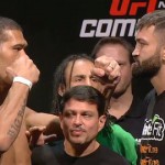 Earlier today in Brazil, UFC Fight Night 51 fighters hit the scales and made their bouts official. Here’s the co-main event staredown: